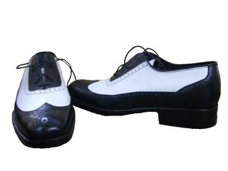 Мужские туфли от дизайнера обуви Андрея Денисенко. Туфли черные с белым из телячьей кожи и чепрака. Цена варьируется в зависимости от используемого материала от $550 до $650.
