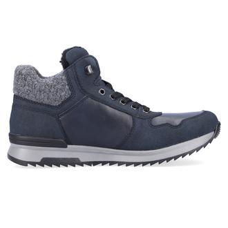 Тёмно-синие ботинки от RIEKER с комбинированным материалом верха.Ботинки оснащены шнурками для шнуровки, благодаря чему вы сможете отрегулировать их точно по своему желанию. Благодаря съемной стельке вы можете рассчитывать на комфортную ходьбу в течение всего дня.Модель, которая отлично будет сочетаться с пуховиком любого цвета.Технология:Rieker TEX – функциональный слой, который делает обувь водонепроницаемой, но при этом дышащей.Antistress – благодаря этой технологии подошва легкая, гибкая, поглощает удары при наступлении на нее и легко адаптируется под каждую ногу.Эта обувь оснащена съемной стелькой. Зимний сезон. Фасон - Спортивные ботинки. Застёжка - шнуровка. Каблук - спортивная подошва. Материал - натуральная кожа,экокожа. Материал подкладки - натуральная овечья шерсть. Вид стельки - съёмная шерстяная стелька.
