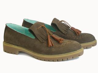 Мужские полуботинки "Нубук" без специального закрепления на стопе по типу "лаофер" имеют декоративный язычок с бахрамой и завязки, союзка модели украшена декоративной строчкой. Акцент полуботинкам придает "тракторная" подошва. Модель выполнена из натуральной кожи - нубук. В наличии размер 43.