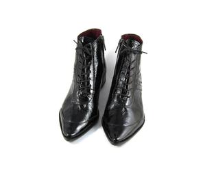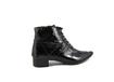 Ботинки из натуральной эластичной лаковой кожи черного цвета на устойчивом каблуке, украшенные строчками и шнуровкой - элегантная надежная удобная многофункциональная обувь для прохладных дней.Цвет, модель позволяют сочетать ботинки с разнообразными комплектами одежды, удачно дополнят брюки 7/8. Замок-молния. Высота каблука -3,5см.Слегка удлиненный носок, невысокий каблук, высота до щиколотки, шнуровка среди трендовых тенденций нынешнего осеннего сезона. Лаковая кожа надежна в эксплуатации, долговечна при условии соблюдения правил носки изделия. Материал верха - натуральная лаковая кожа, подкладки - натуральная кожа,подошвы - качественный искусственный материал. Страна-изготовитель - Польша. Размеры чуть заменшены.