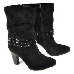 Женские полусапожки Stalotes 02910. Зимний сезон. Фасон - Полусапожки. Застёжка - замок. Каблук - каблук высокий. Материал - натуральная замша. Материал подкладки - евромех (натуральная цигейка). Высота каблука - 10 см. Высота обуви с каблуком - 30 см. Объём голени - 32 см.