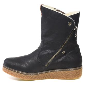 Полусапожки Rieker арт. Y4089-00. Зимний сезон. Фасон - Полусапожки. Застёжка - два замка. Каблук - танкетка низкая. Материал - экокожа. Материал подкладки - натуральная овечья шерсть. Высота каблука - 3 см. Толщина подошвы - 2 см. Высота обуви с каблуком - 22 см. Объём голени - 32 см.