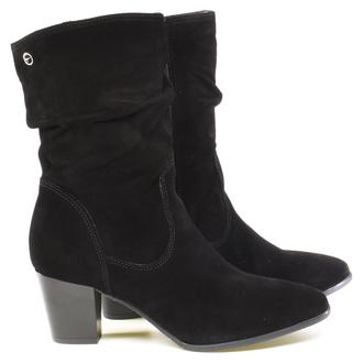 Полусапожки Tamaris арт. 1-25740-23-001-BLACK. Осень. Фасон - Полусапожки. Застёжка - замок. Каблук - каблук средний. Материал - натуральная замша. Материал подкладки - байка. Вид стельки - кожаная стелька. Высота каблука - 6 см. Высота обуви с каблуком - 28 см. Объём голени - 31 см.