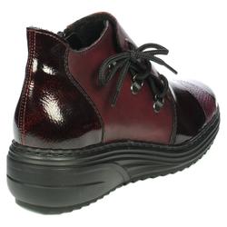 Повседневные ботинки Rieker арт. M9334-35. Зимний сезон. Фасон - Повседневные ботинки. Застёжка - шнурок,замок. Каблук - танкетка низкая. Материал - натуральная кожа,лаковая кожа. Материал подкладки - байка. Высота каблука - 4 см. Толщина подошвы - 2 см.