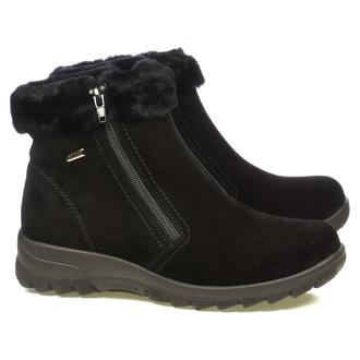 Женские повседневные ботинки Baden 012120. Зимний сезон. Фасон - Повседневные ботинки. Застёжка - два замка. Каблук - танкетка низкая. Материал - натуральная замша. Материал подкладки - мех натуральный (цигейка). Высота каблука - 3,5 см. Толщина подошвы - 2 см. Высота обуви с каблуком - 17 см.