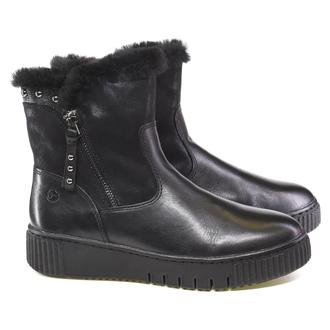 Повседневные ботинки Tamaris арт. 1.1.26486-23-001-BLACK. Зимний сезон. Фасон - Повседневные ботинки. Застёжка - замок. Каблук - танкетка низкая. Материал - натуральная кожа. Материал подкладки - натуральная овечья шерсть. Вид стельки - меховая стелька. Высота каблука - 4 см. Толщина подошвы - 3 см. Высота обуви с каблуком - 22 см.