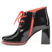 Женские модельные ботинки Medea 056122. Осень. Фасон - Модельные ботинки. Застёжка - шнуровка,замок. Каблук - каблук высокий. Материал - лаковая кожа. Материал подкладки - натуральная кожа. Вид стельки - кожаная стелька. Высота каблука - 8,5 см. Высота обуви с каблуком - 19 см.