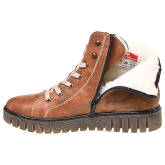 Повседневные ботинки Rieker арт. Y3442-23. Зимний сезон. Фасон - Повседневные ботинки. Застёжка - шнуровка,молния. Каблук - танкетка низкая. Материал - экокожа,текстиль. Материал подкладки - натуральная овечья шерсть,мембрана. Вид стельки - шерстяная стелька. Высота каблука - 3,5 см. Толщина подошвы - 2,5 см. Высота обуви с каблуком - 18 см.