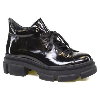 Женские повседневные ботинки Haries 056243. Осень. Фасон - Повседневные ботинки. Застёжка - шнуровка,молния. Каблук - каблук низкий,платформа. Материал - лаковая кожа. Материал подкладки - байка. Вид стельки - стелька байка. Высота каблука - 5 см. Толщина подошвы - 4 см. Высота обуви с каблуком - 17 см.