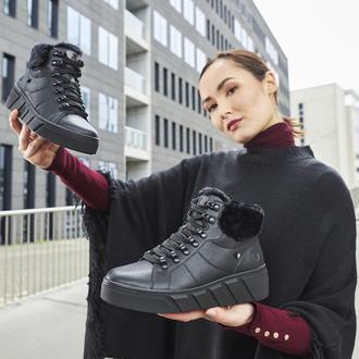 Повседневные ботинки Rieker Evolution арт. W0560-00. Зимний сезон. Фасон - Повседневные ботинки. Застёжка - шнуровка,молния. Каблук - танкетка низкая. Материал - натуральная кожа,текстиль. Материал подкладки - натуральная овечья шерсть. Вид стельки - съёмная стелька Evolution Soft. Высота каблука - 4,5 см. Толщина подошвы - 3 см. Высота обуви с каблуком - 16 см.
