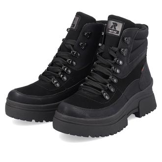 Женские ботинки Rieker EVOLUTION черный бриллиант.Все черное - что еще? Эти черные ботинки Rieker EVOLUTION — универсальные таланты сезона! Помимо шнуровки, модель имеет еще и молнию, обеспечивающую идеальную поддержку. Легкая подошва-платформа обеспечивает хорошую поддержку на каждом шагу. Функциональный и удобный плюс — мягкая съемная стелька. Ваши ноги остаются в тепле благодаря уютной и очень теплой подкладке из натуральной шерсти, а технология RiekerTEX обеспечивает сухость обуви! Холод уходит с пустыми руками!. Зимний сезон. Фасон - Повседневные ботинки. Застёжка - шнуровка,молния. Каблук - каблук низкий. Материал - натуральная кожа,экокожа. Материал подкладки - натуральная овечья шерсть,мембрана. Вид стельки - съёмная стелька Evolution Soft. Высота каблука - 3,5 см. Толщина подошвы - 2,5 см. Высота обуви с каблуком - 17 см.