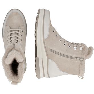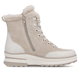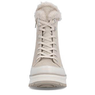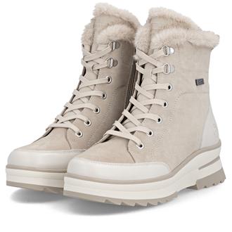 Повседневные ботинки Remonte арт. D2B76-62. Зимний сезон. Фасон - Повседневные ботинки. Застёжка - шнуровка,молния. Каблук - танкетка низкая,платформа. Материал - натуральная кожа,текстиль. Материал подкладки - натуральная овечья шерсть,мембрана. Вид стельки - съёмная шерстяная стелька с фольгой. Высота каблука - 5,6 см. Толщина подошвы - 3 см. Высота обуви с каблуком - 18 см.