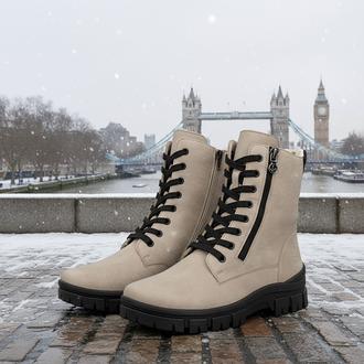 Повседневные ботинки Rieker арт. Z1152-60. Зимний сезон. Фасон - Повседневные ботинки. Застёжка - шнуровка,две молнии. Каблук - каблук низкий,платформа. Материал - экокожа. Материал подкладки - натуральная овечья шерсть. Вид стельки - велюровая стелька. Высота каблука - 4,4 см. Толщина подошвы - 2,5 см. Высота обуви с каблуком - 21 см.