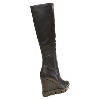 Женские сапоги Glossi 013440. Зимний сезон. Фасон - Сапоги. Застёжка - молния. Каблук - танкетка высокая. Материал - натуральная кожа. Материал подкладки - евромех (натуральная цигейка). Вид стельки - меховая стелька. Высота каблука - 10,5 см. Толщина подошвы - 2,5 см. Высота обуви с каблуком - 48 см. Объём голени - 32 см.