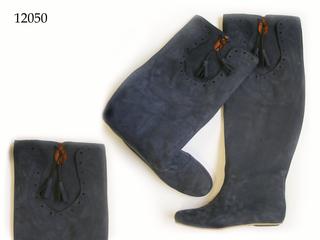 – Женские сапоги со свободным голенищем высотой до колена. Сапоги на плоской подошве выполнены из кожи-нубук, подклад - кожа. Голенище сапог декорировано фигурным краем, перфорацией, декоративной строчкой и завязками с китицами. Размер на заказ.