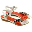 Красивые босоножки бело-оранжевого цвета, украшенные деревянной брошью, станут отличным дополнением к гардеробу в стиле casual. Удобная низкая танкетка очень комфортна для ежедневной ходьбы. Носите эти босоножки с самыми разными повседневными вещами: от платья средней длины до джинсов-дудочек. Летний сезон. Фасон - Босоножки. Каблук - танкетка низкая. Материал - натуральная кожа. Материал подкладки - натуральная кожа. Высота каблука - 3,5 см.