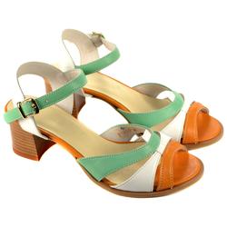 Оригинальные босоножки от Leader Style белого и зеленого цветов. Модель выполнена из гладкой натуральной кожи в виде переплетенных полос. Детали: подкладка и стелька из натуральной кожи, регулируемый ремешок на подъеме, невысокий устойчивый каблук, гладкая подошва.. Летний сезон. Фасон - Босоножки. Каблук - каблук средний. Материал - натуральная кожа. Материал подкладки - натуральная кожа. Высота каблука - 5,5 см.