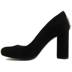 Элегантные замшевые туфли черного цвета для офиса и не только с украшением золотистого цвета на заднике. Изысканная стильная модель актуальной в этом сезоне формы на оригинальном каблуке украсит любой комплект, подчеркнет утонченность дамы.Высота каблука - 8,5см. Материал верха - натуральная замша,подкладки - натуральная кожа, подошвы - искусственный материал. Страна-изготовитель - Польша. Размеры полномерные.