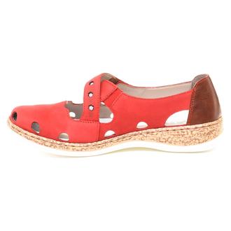 Повседневные туфли Rieker арт. 46356-33. Весенний сезон. Фасон - Повседневные туфли. Застёжка - липучка. Каблук - танкетка низкая. Материал - натуральная кожа,экокожа. Материал подкладки - искусственная кожа. Вид стельки - кожаная стелька. Высота каблука - 3 см. Толщина подошвы - 1,5 см.