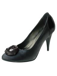 Женские туфли Karmen на средней высоты каблуке. Модель выполнена в черном цвете. Кокетливый цветок на носке делает строгий дизайн более женственным.
