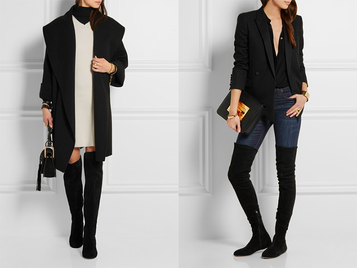 Знаете, как колготки или чулки с прямой линией сзади зрительно удлиняют ноги? Так же с высокими сапогами с контрастной молнией и шнуровкой спереди и удлиненным мыском. Ножки сразу попадают в центр восхищенных взглядов! Особенно, если сапоги на каблуках.