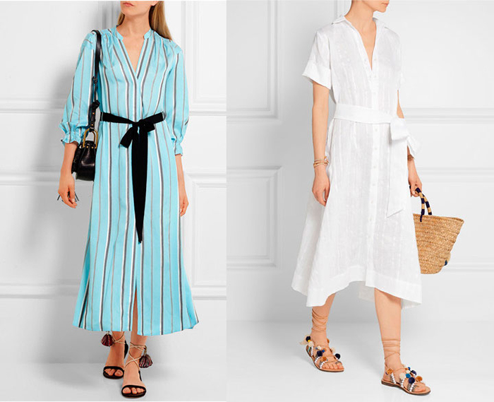 Еще один тренд этого сезона. Босоножки с множеством помпонов, завязок, ярких балабонов, бахромой круто сочетаются с длинным платьем-рубашкой. Получается немного богемно и очень эффектно. Одевайтесь так на вечернее мероприятие или прогулку по набережной.