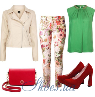 Экспериментируйте с яркими цветами. Дополняйте красные лодочки желтыми, зелеными, синими, оранжевыми, желтыми цветами в одежде. Правда, соблюдайте правило - не больше трех тонов в одном луке.