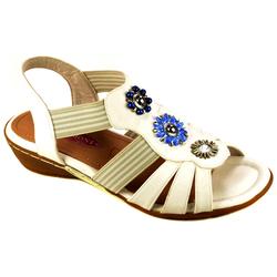 Босоножки женские от Redmont белого цвета, на резинках, подъем ноги декорирован синими цветами с камнями. Эта модель незаменима в жаркие летние дни. Летний сезон. Фасон - Босоножки. Каблук - танкетка низкая. Материал - искусственная кожа. Материал подкладки - синтетика. Высота каблука - 3 см. Толщина подошвы - 1 см.