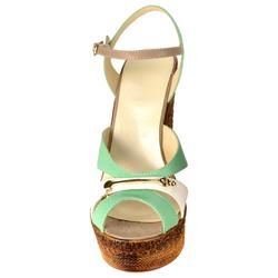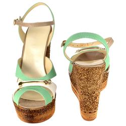 Стильные босоножки Leader Style бело-зеленого цвета. Модель выполнена из натуральной кожи с застежкой на пряжку. Детали: без подкладки и стельки, устойчивая танкетка из легкого полимерного материала. Кокетливый вырез мыска, тонкий ремешок с аккуратной застежкой из серебристого металла и элегантный изгиб колодки создают неповторимый ансамбль. Летний сезон. Фасон - Босоножки. Каблук - танкетка высокая. Материал - натуральная кожа. Материал подкладки - натуральная кожа. Высота каблука - 12,5 см. Толщина подошвы - 4 см.