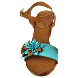 Стильные открытые босоножки с эффектным цветком отлично дополнят повседневный летний гардероб. Пара изготовлена из качественных материалов, стойких к истиранию. Удобная танкетка позволит без устали носить эту пару не снимая хоть весь день. Модель подойдёт к юбке до колена, платью любого фасона, укороченным брюкам.. Летний сезон. Фасон - Босоножки. Каблук - танкетка средняя. Материал - натуральная кожа. Материал подкладки - натуральная кожа. Высота каблука - 4,5 см. Толщина подошвы - 1 см.