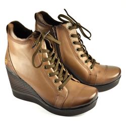 Женские повседневные ботинки Mammamia 05724. Демисезон. Фасон - Повседневные ботинки. Застёжка - шнурок,замок. Каблук - танкетка высокая. Материал - натуральная кожа. Материал подкладки - байка. Высота каблука - 8 см. Толщина подошвы - 2 см. Высота обуви с каблуком - 20 см. Объём голени - 24 см.