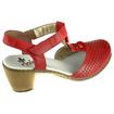 Босоножки женские из натуральной кожи красного цвета арт. 40996-33. Перфорация верха обуви обеспечивает воздухообмен и тем самым оптимальный микроклимат Вашей стопе. Эта модель незаменима в жаркие летние дни. Создайте яркий акцент летнего образа с этой элегантной парой. Качественные материалы и устойчивый каблук удобны в ходьбе. Летний сезон. Фасон - Босоножки. Застёжка - липучка. Каблук - каблук средний. Материал - натуральная кожа. Материал подкладки - кожзам,кожаная стелька. Высота каблука - 6 см.