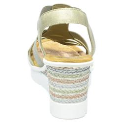 Босоножки Rieker арт. V6548-40. Летний сезон. Фасон - Босоножки. Каблук - танкетка высокая. Материал - экокожа. Материал подкладки - текстиль. Высота каблука - 7,5 см. Толщина подошвы - 2 см.
