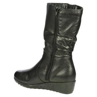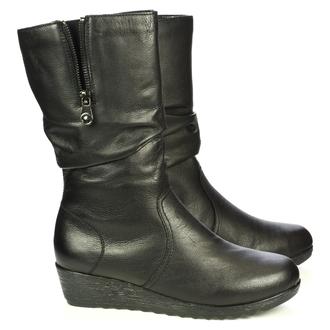 Сапоги Rieker арт. X2471-00. Зимний сезон. Фасон - Сапоги. Застёжка - замок. Каблук - танкетка низкая. Материал - натуральная кожа. Материал подкладки - натуральная овечья шерсть. Высота каблука - 4 см. Толщина подошвы - 1,5 см. Высота обуви с каблуком - 29 см. Объём голени - 38 см.