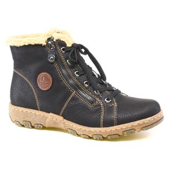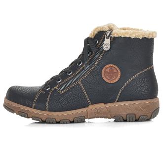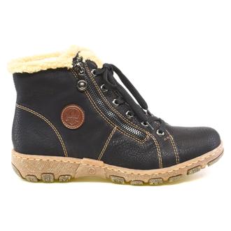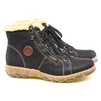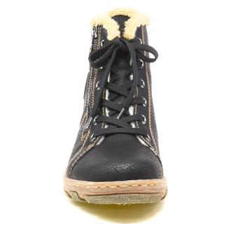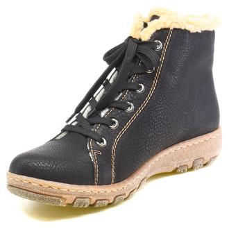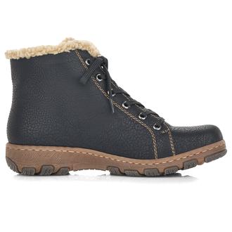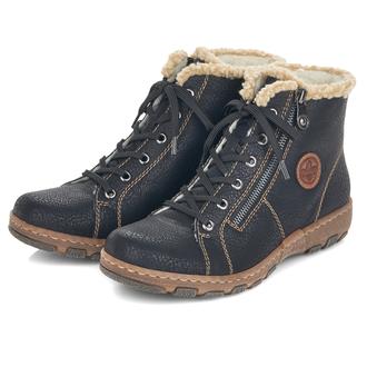 Повседневные ботинки Rieker арт. Z0121-00. Зимний сезон. Фасон - Повседневные ботинки. Застёжка - шнуровка,молния. Каблук - танкетка низкая. Материал - экокожа. Материал подкладки - натуральная овечья шерсть. Вид стельки - шерстяная стелька. Высота каблука - 3,5 см. Толщина подошвы - 1,5 см. Высота обуви с каблуком - 16 см.