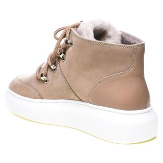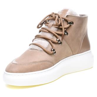 Женские спортивные ботинки Stepter 013610. Зимний сезон. Фасон - Спортивные ботинки. Застёжка - шнуровка. Каблук - плоская подошва,платформа. Материал - натуральный нубук. Материал подкладки - натуральная овечья шерсть. Вид стельки - съёмная меховая стелька. Высота каблука - 4,5 см. Толщина подошвы - 3 см. Высота обуви с каблуком - 17 см.