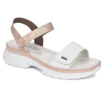 Сандалии Rieker арт. 66654-80. Летний сезон. Фасон - Сандалии. Застёжка - две липучки. Каблук - танкетка низкая. Материал - натуральная кожа,искусственная кожа. Материал подкладки - искусственная кожа. Вид стельки - кожаная стелька. Высота каблука - 4,5 см. Толщина подошвы - 2,5 см.