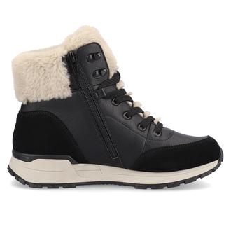 Спортивные ботинки Rieker Evolution арт. W0670-00. Зимний сезон. Фасон - Спортивные ботинки. Застёжка - шнуровка. Каблук - спортивная подошва. Материал - натуральная кожа,текстиль. Материал подкладки - натуральная овечья шерсть. Вид стельки - съёмная стелька Evolution Soft. Высота каблука - 3 см. Толщина подошвы - 2 см. Высота обуви с каблуком - 17 см.