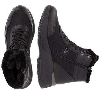 Спортивные ботинки Remonte арт. D6684-02. Зимний сезон. Фасон - Спортивные ботинки. Застёжка - шнуровка,молния. Каблук - плоская подошва. Материал - натуральная кожа,экокожа. Материал подкладки - натуральная овечья шерсть. Вид стельки - съёмная шерстяная стелька. Высота каблука - 5,1 см. Толщина подошвы - 2,5 см. Высота обуви с каблуком - 17 см.
