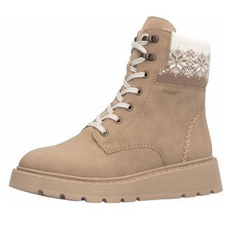 Повседневные ботинки Rieker арт. 70403-20. Зимний сезон. Фасон - Повседневные ботинки. Застёжка - шнуровка,молния. Каблук - танкетка низкая. Материал - натуральная кожа,экокожа. Материал подкладки - искусственный мех. Вид стельки - съёмная стелька байка. Высота каблука - 4 см. Толщина подошвы - 3 см. Высота обуви с каблуком - 20 см.